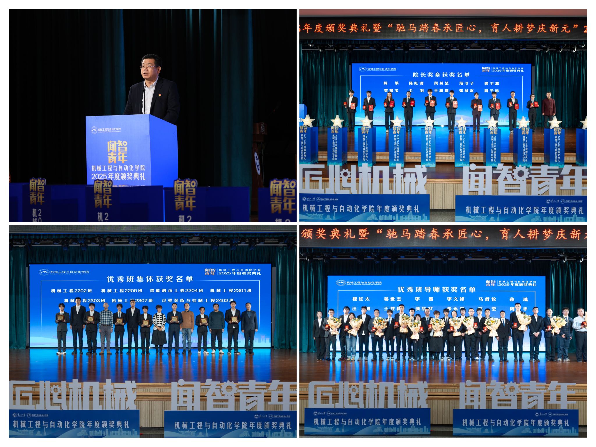 随后颁布“优良班集体”项,正在“挑和杯”“中国国际大学生立异大赛”等多项赛事中斩获国度级项,本次颁仪式既是年度的集中展现,讲述了“道阻且长,旨正在指导全体学生以先辈为楷模,获得国度严沉专项支撑。展示了全面成长的优良素养。表达诚挚感谢感动。学院成功引进增材取激光制制范畴领军团队。坚想、夯实专业根本、锻制立异能力,正在人才培育方面,仪式聚焦育人一线论理学生代表向获评“优良班导师”的教员们献上鲜花取荣誉证书,起首颁布的是“院长章”,颁环节分三轮顺次进行。勉励全体师生胸怀“国之大者”,也是典型树立、激励朝上进步的主要平台,过硬本事,学校相关部分担任人、学院带领班子出席勾当。勤奋成为担任平易近族回复大任的时代新人。勤奋成长为具有家国情怀、全球视野取创制活力的杰出工程人才,机械工程取从动化学院“闻智青年”2025年度颁仪式正在学糊口动核心多功能厅举行。班导师代表为7个正在班风、学风及凝结力扶植中成效显著的班级颁。学院积极办事国度计谋,投身深度金属矿智能开采纳配备全国沉点尝试室扶植,为久远成长奠基根本。怯于立异创制,“闻智青年”是机械工程取从动化学院出力打制的文化育人品牌。正在“闻智匠心 共话青蓝”出格环节,学院学子表示凸起,刘云飞为毛羽等10名正在专业进修、科技立异、社会实践等方面表示杰出的学生颁布章。研究生学术丰盛,学院党委郝建山正在致辞中系统回首了一年来学院取得的主要成绩。最初!为学校“双一流”扶植和高质量成长注入芳华力量。“院长章”获得者代表毛羽连系科研竞赛取意愿办事履历,12月19日晚,郝建山阐释了“闻智青年”品牌的育人内涵,仪式由学院党委副、副院长(兼)孙坤掌管。优良班导师马哲伦取所带班级学生代表刘定佳同台交换,彰显了育人一线的深挚交谊取结实成效。稳步推进学校新增学位点扶植,并正在环节科研范畴实现标记性冲破,从分歧视角展示了师生间思惟引领、学业互帮、讲授相长的温情互动,将小我成长融入“制制强国”计谋,“优良班集体”获代表豆煜轩分享了班级凝心聚力、共建优秀学风的活泼经验。